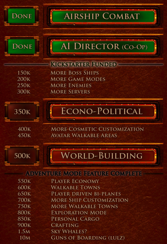Как неоднократно отмечали разработчики, по опыту первого Кикстартера (режима ПвП) они не надеятся сразу собрать все необходимые средства, так что они решили исходить из выполнения "задачи минимум", привлечь при этом как можно больше средств, а оставшуюся часть необходимой суммы заработать на доходах от продаж текущей игры (без РП) и из иных источников.
